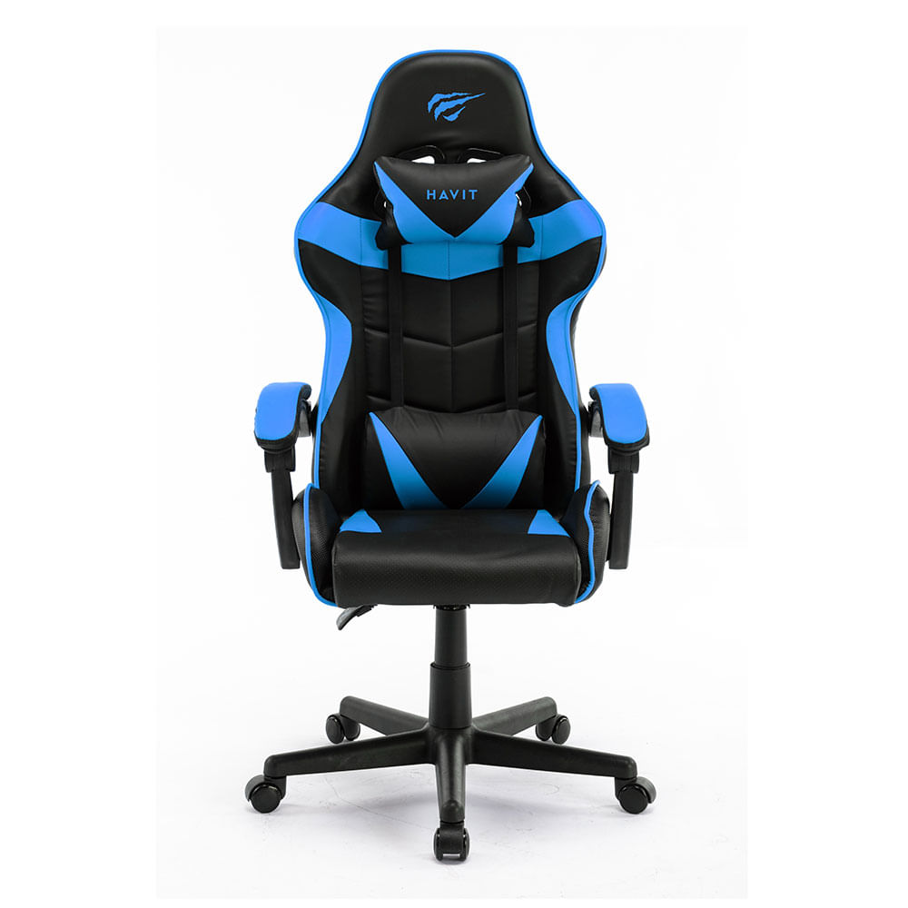 Cadeira Gamer Havit GC933, Reclinação 130° , Apoio de Braço, Estrutura em Ferro 1,2mm , Assento em Esponja Original, Revestimento em Couro Azul