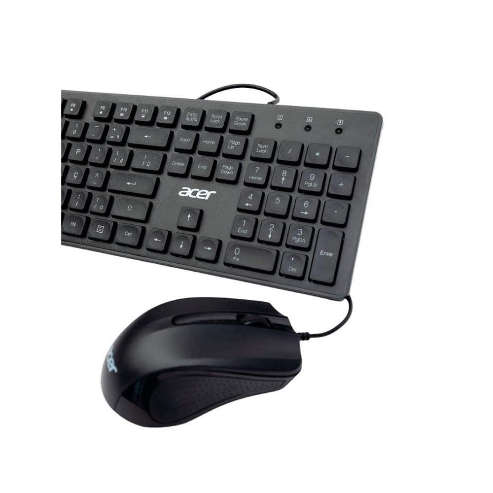 Combo Teclado e Mouse com Fio Acer OCC300 Gen2 ? Praticidade, desempenho e estilo no seu setup! O teclado possui layout ABNT2, teclas macias e silenciosas, ideal para digitação confortável no dia a dia. O mouse óptico com fio conta com sensor de alta precisão de até 1200 DPI, além de um design ergonômico e ambidestro. Ambos têm conexão USB Plug & Play, sendo compatíveis com Windows, Mac e Linux ? é só conectar e usar. Com design moderno e construção resistente, esse combo é perfeito para uso dom