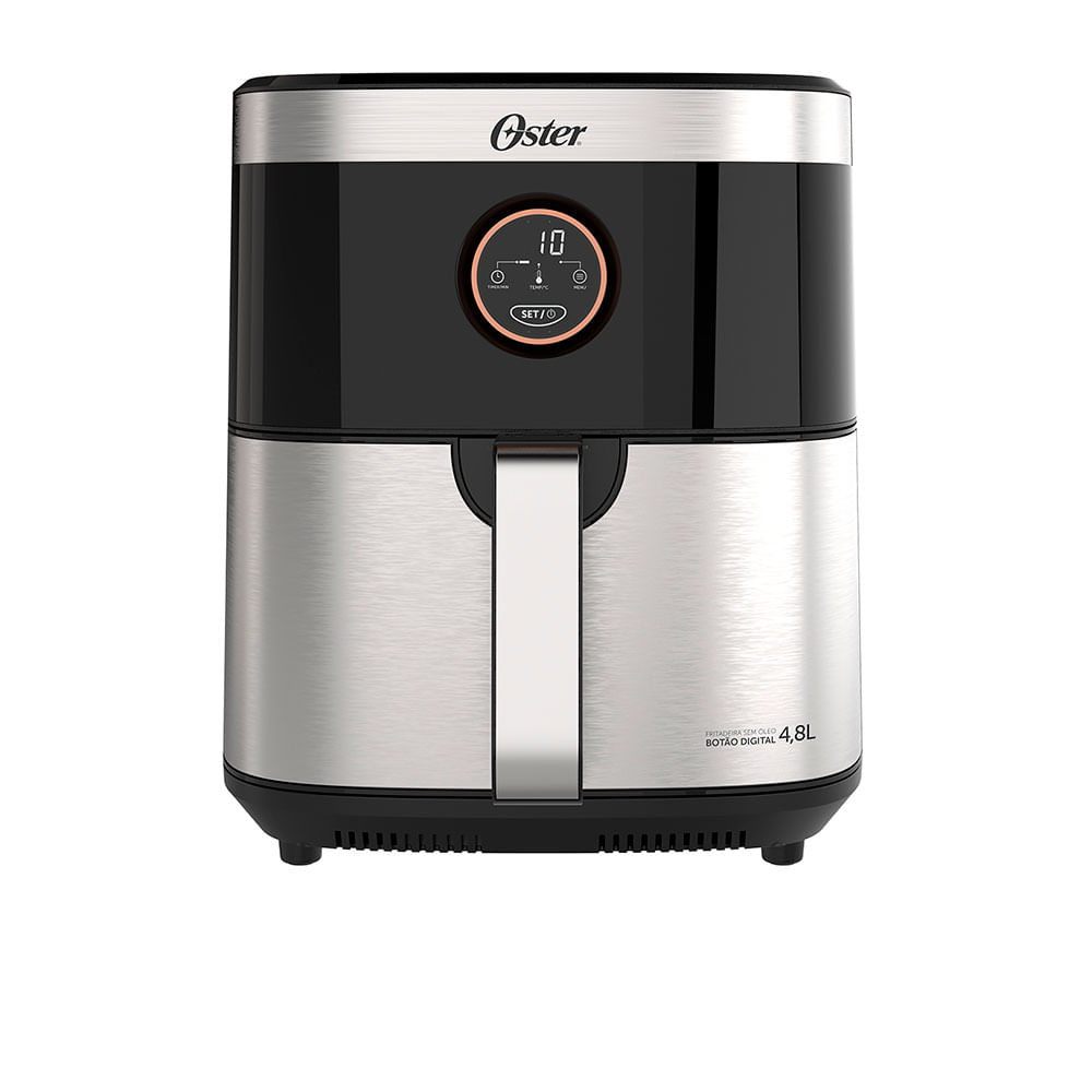 leve o nível da sua cozinha com a Fritadeira Oster Black&Inox 4,8L (OFRT660)! Com 1500W de potência e 8 funções pré-programadas , ela prepara refeições rápidas, crocantes e saudáveis para toda a família sem utilizar óleo. Seu design exclusivo em inox traz sofisticação ao ambiente , enquanto o controle de temperatura de 40°C a 200°C e a função desidratar garantem versatilidade total no dia a dia.