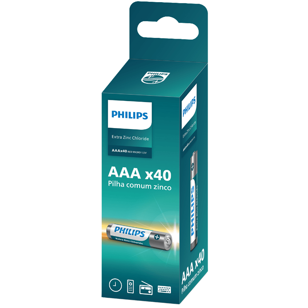 Pilha Philips Zinco AAA 1,5V, Pack com 40 Unidades - R03L40TF/59