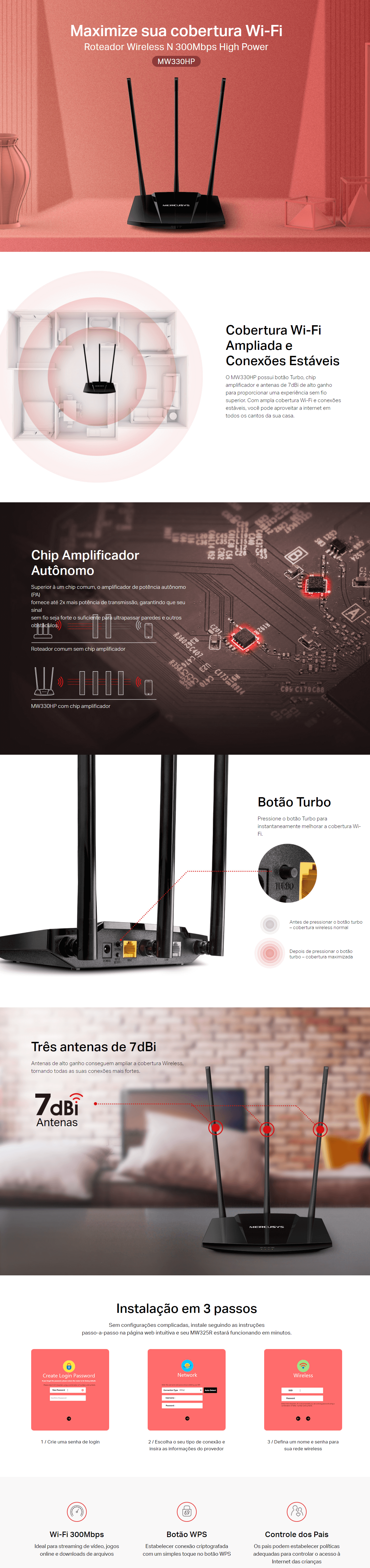 Roteador Mercusys Wireless N 300Mbps High Power MW330HP | Preto