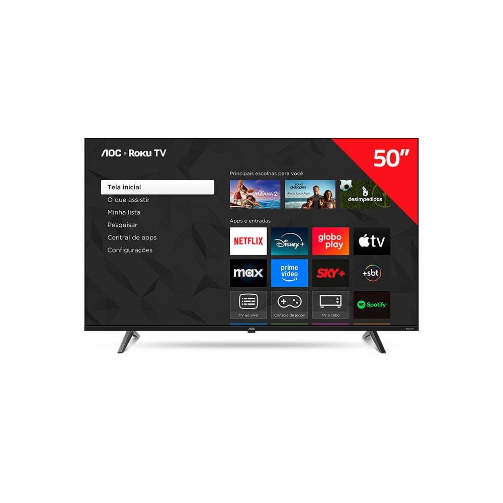 A Smart TV LED 4K 50" AOC-Philips 50U7045/78 com Roku TV é a escolha ideal pra quem busca qualidade de imagem e praticidade no dia a dia. Com resolução 4K Ultra HD, ela oferece imagens ricas em detalhes, cores vivas e excelente contraste. A plataforma Roku TV garante acesso fácil e rápido aos principais aplicativos de streaming como Netflix, YouTube, Prime Video e muito mais, tudo com uma interface simples e fluida. O controle pode ser feito pelo app no celular